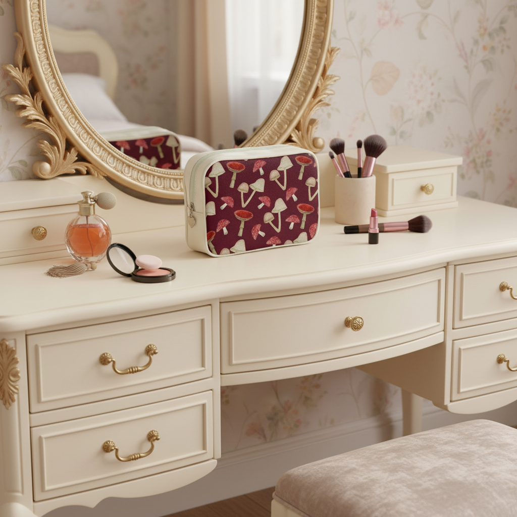 ‘Mushrooms’ Make Up Bag – Woodland Fungi Illustration | Nature Inspired Cosmetic, Toiletries Bag