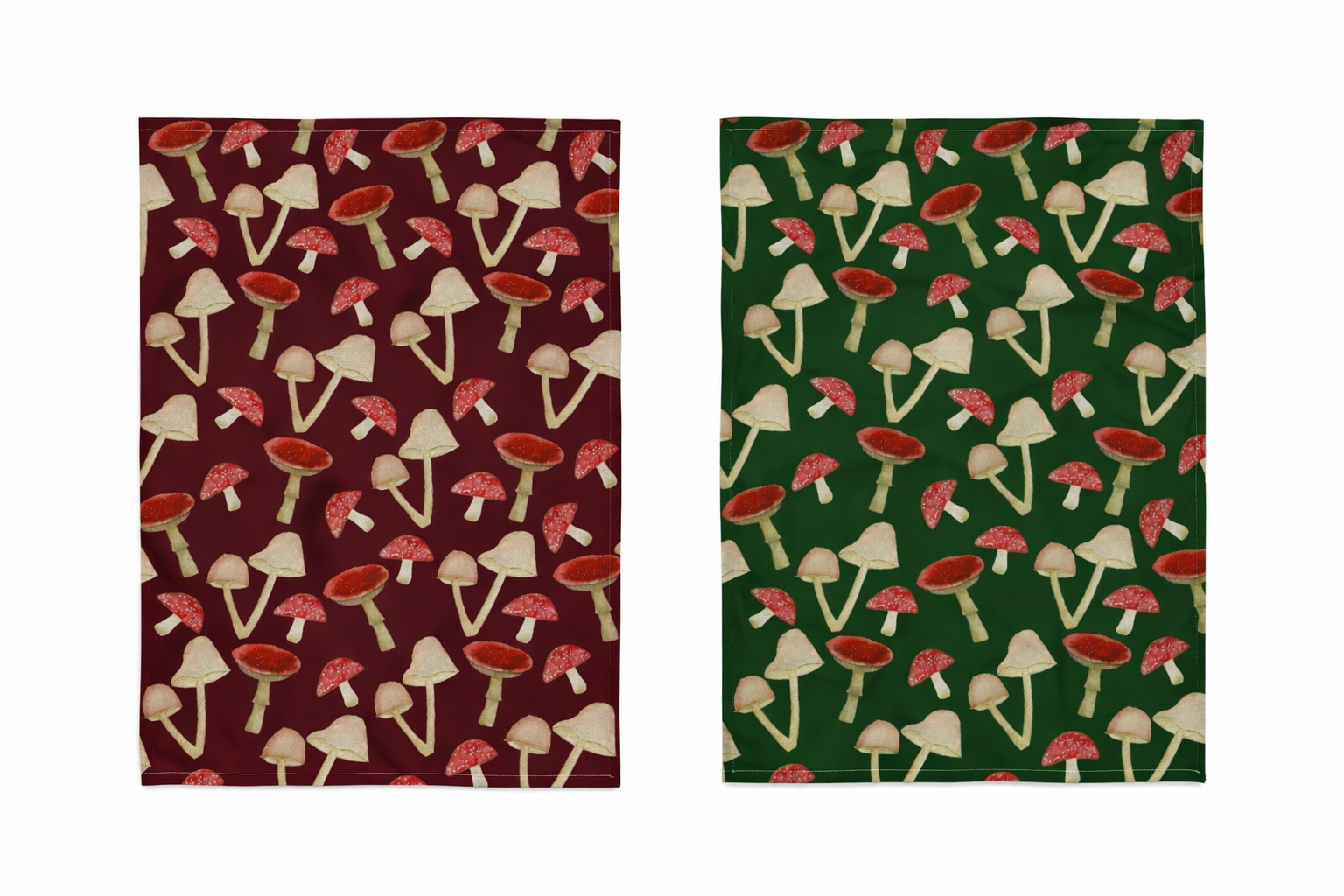 So Mush Love Tea Towel – Art-Led Mushroom Cotton Linen Kitchen Towel (Burgundy or Green)